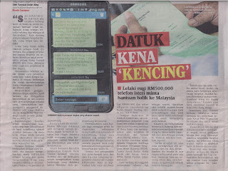 menghubungi isterinya di Malaysia dan meminta memasukkan sejumlah wang ke akaun