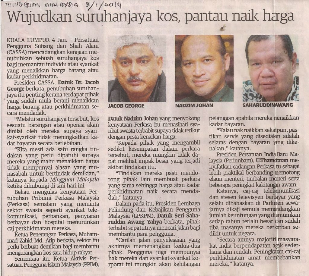 1084) MINGGUAN MALAYSIA 5/1/2014 WUJUDKAN SURUHANJAYA KOS, PANTAU NAIK HARGA