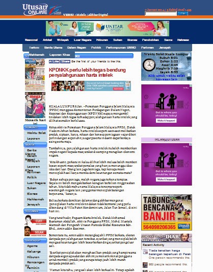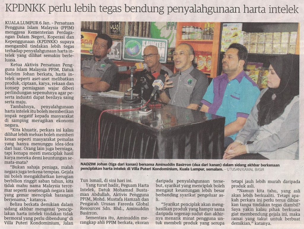 1085) UTUSAN MALAYSIA 7/1/2014 KPDNKK PERLU LEBIH TEGAS BENDUNG PENYALAHGUNAAN HARTA INTELEK