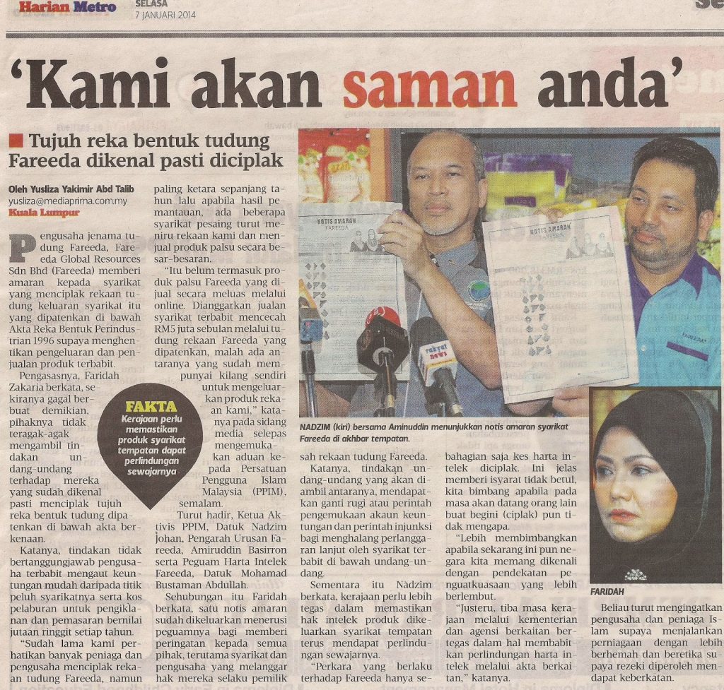 pengusaha menciplak rekaan tudung Fareeda, namun paling ketara sepanjang tahun