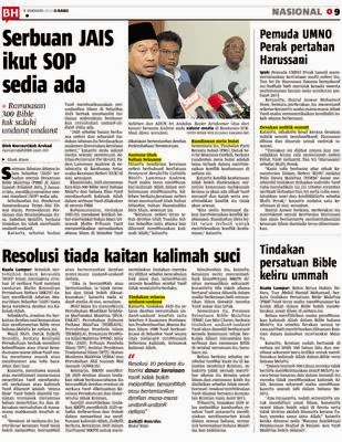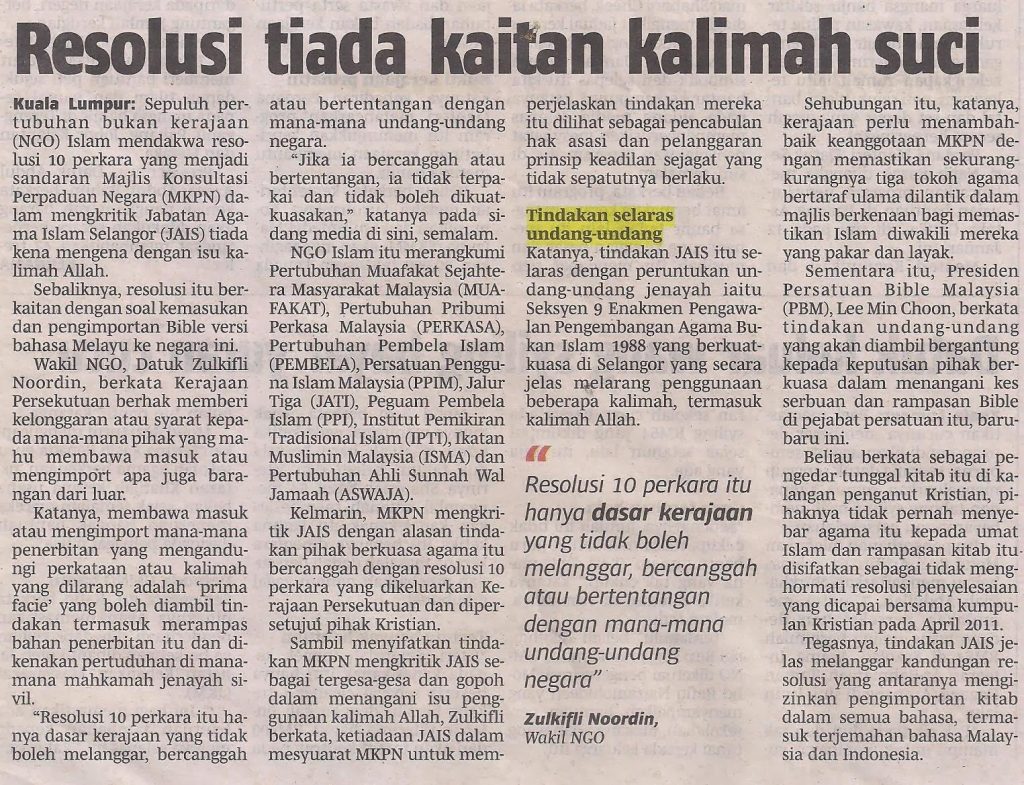 1091) BERITA HARIAN 8/1/2013 RESOLUSI TIADA KAITAN KALIMAH SUCI