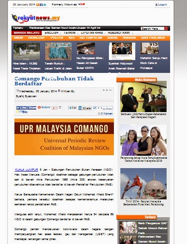 KUALA LUMPUR 8 Jan – Gabungan Pertubuhan Bukan Kerajaan (NGO) Hak Asasi Manusia (Comango) disahkan sebagai gabungan pertubuhan tidak sah di bawah Akta Pertubuhan 1966 (Akta 335) ekoran kebanyakan pertubuhan dibawahnya tidak berdaftar di bawah Pendaftar Pertubuhan (RoS).