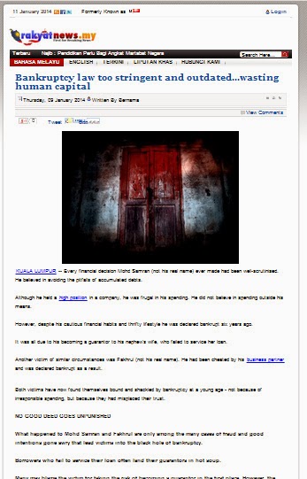 1103) RAKYAT NEWS 10/1/2014 BANKRUPTCY LAW TOO STRINGENT AND OUTDATE…WASTING HUMAN CAPITAL