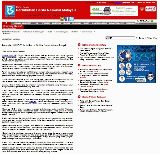 1105) BERNAMA 10/1/2014 PEMUDA UMNO TUBUH PORTAL ONLINE SALUR ADUAN RAKYAT