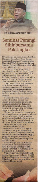 1109) UTUSAN MALAYSIA 2/1/2014 SEMINAR PERANGI SIHIR BERSAMA PAK UNGKU