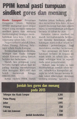 1111) HARIAN METRO 12/1/2014 PPIM KENAL PASTI TUMPUAN SINDIKET GORES DAN MENANG