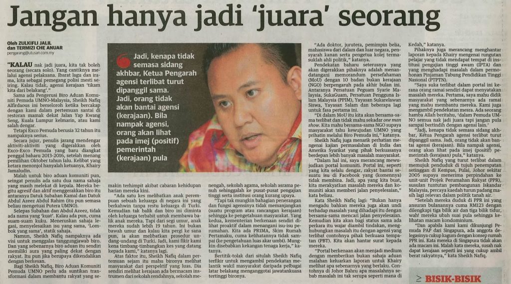 1123) UTUSAN MALAYSIA 18/1/2014 JANGAN HANYA JADI ‘JUARA’ SEORANG