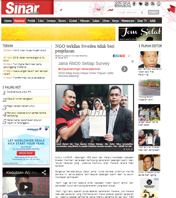 1128) SINAR HARIAN 22/1/13-NGO terkilan Sweden tidak beri penjelasan