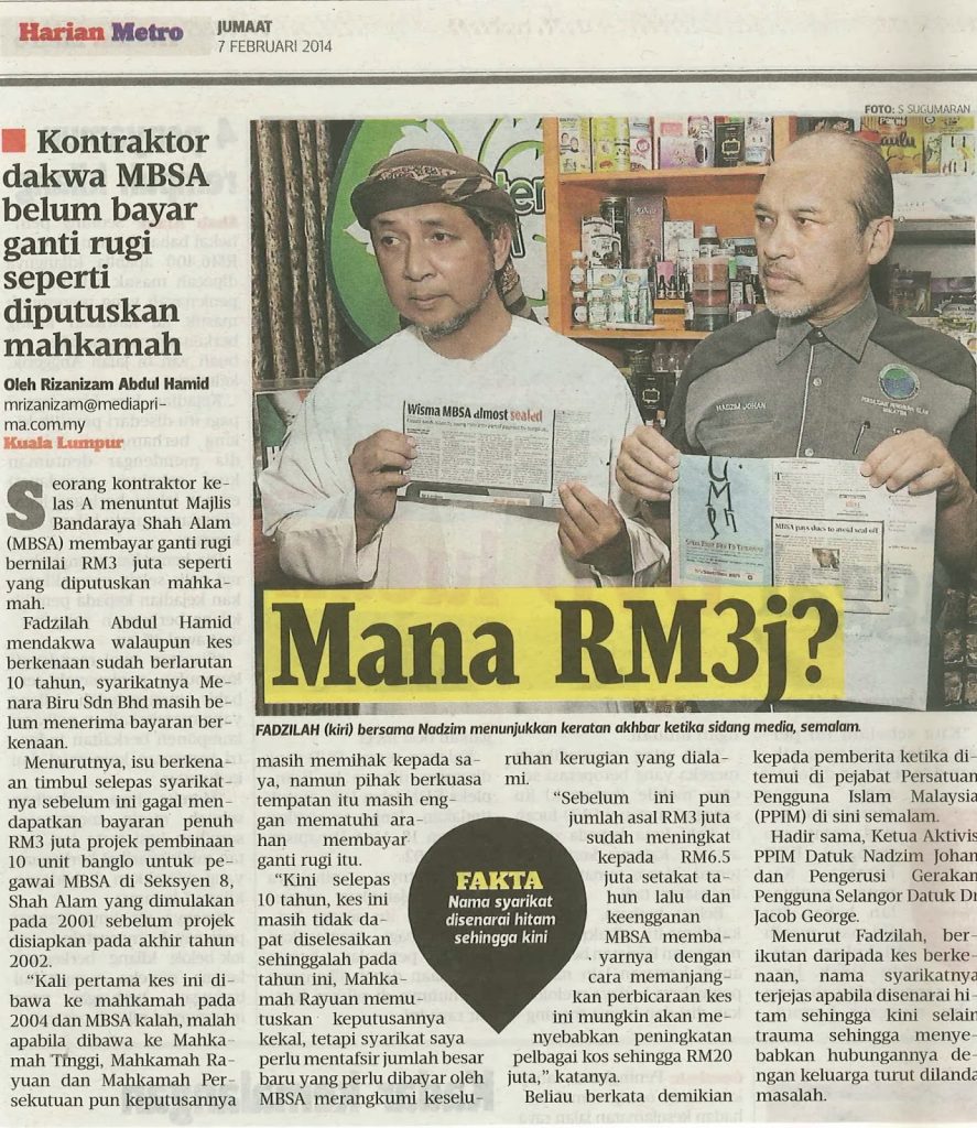 kepada RM6.5 juta setakat tahun lalu dan keengganan MBSA membayarnya dengan