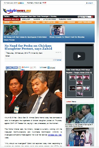 1143) RAKYAT NEWS 9/2/2014 NO NEED FOR PROBE ON CHICKEN SLAUGHTER PROTEST