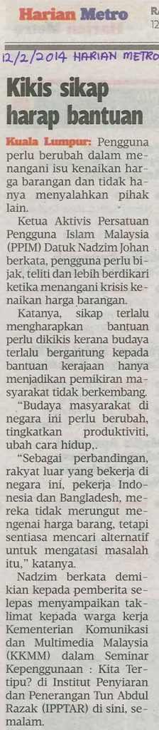 1147) HARIAN METRO 12/2/2014 KIKIS SIKAP HARAP BANTUAN