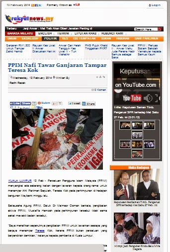 1154) RAKYAT NEWS 13/2/2014 PPIM NAFI TAWAR GANJARAN TAMPAR TERESA KOK