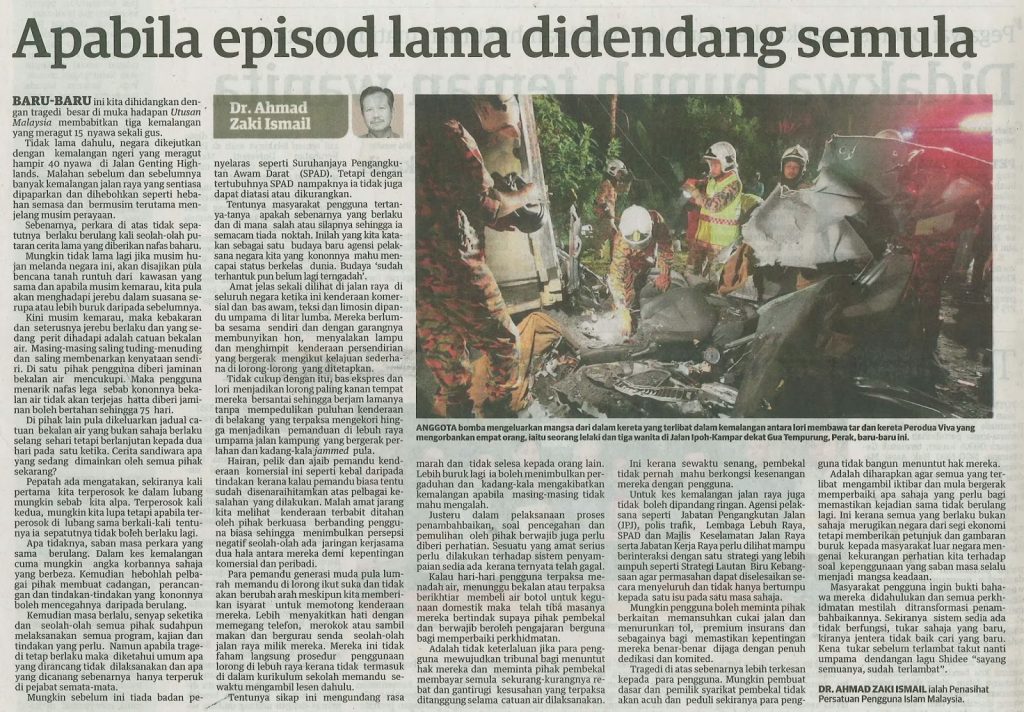 kes kemalangan cuma mungkin angka korbannya sahaja yang berbeza. Kemudian