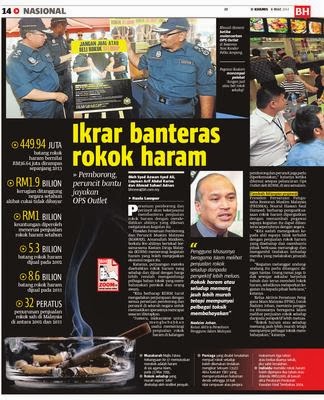 bekerjasama membanteras penjualan rokok haram dengan mendedahkan ahlinya yang