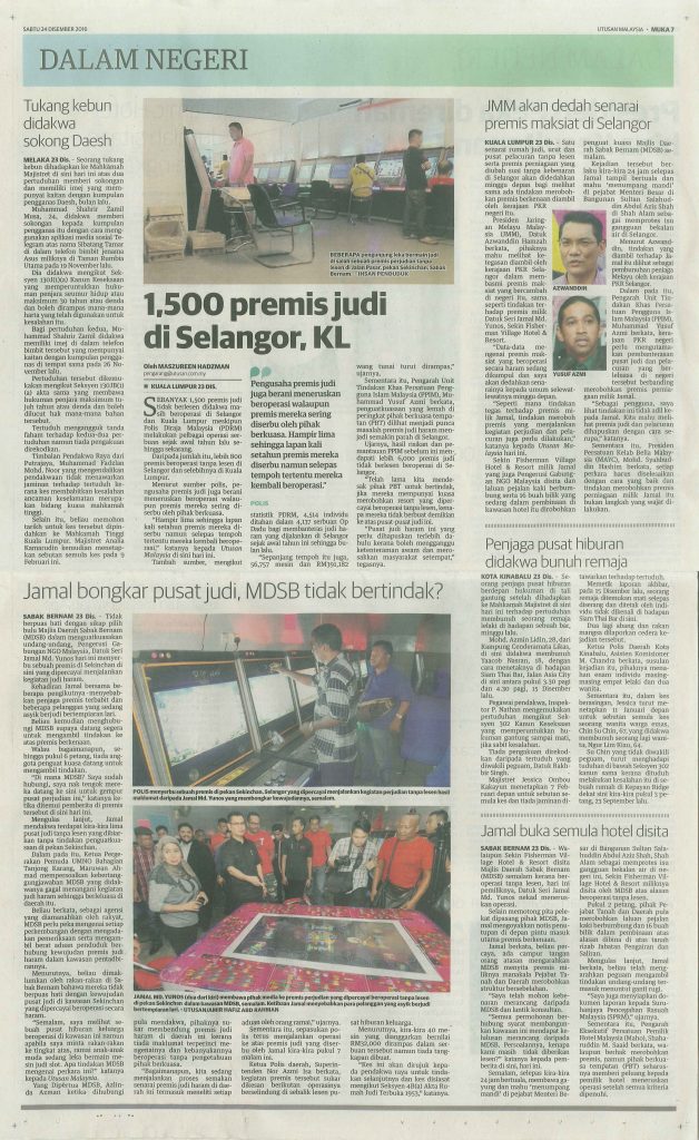“Pusat judi haram ini yang perlu dihapuskan terlebih dahulu kerana boleh mengganggu ketenteraman awam dan merosakkan masyarakat setempat,” tegasnya.