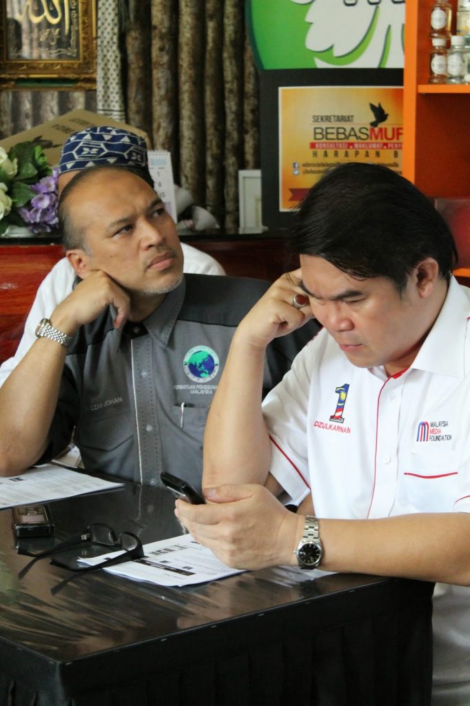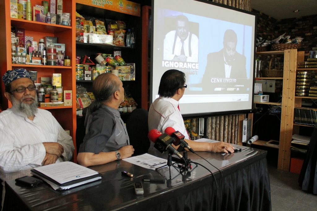 28/03/2014 KUALA LUMPUR : Ketua Aktivis Persatuan Pengguna Islam Malaysia (PPIM), Datuk Nadzim Johan, Haji Kareem Said Khadaied dan Presiden Kelab Wartawan Muda Malaysia, Dzulkarnain Taib mengadakan satu sidang berkaitan berita yang dikeluarkan oleh FOX NEWS dan CNN.