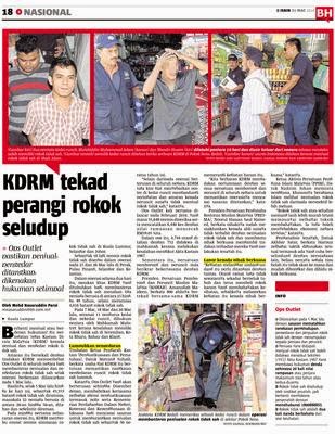 Amaran itu bersekali dengan tindakan KDRM memperhebat Ops Outlet di seluruh negara bagi membanteras penjualan dan pengedaran rokok tidak sah sejak operasi berkenaan dilancarkan pada 5 Mac lalu.