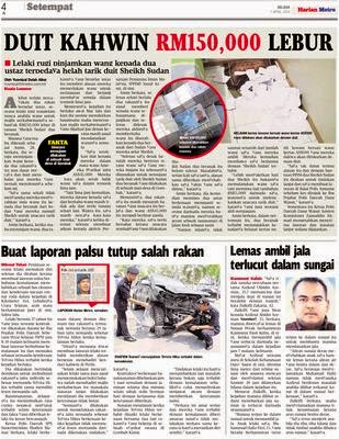“Lebih menyakitkan hati dua Sheikh itu bukannya memulangkan wang saya tapi meminta lagi tambahan RM15,000 daripada saya, kononnya untuk melengkapkan upacara tarik duit,” katanya yang juga seorang ahli perniagaan.
