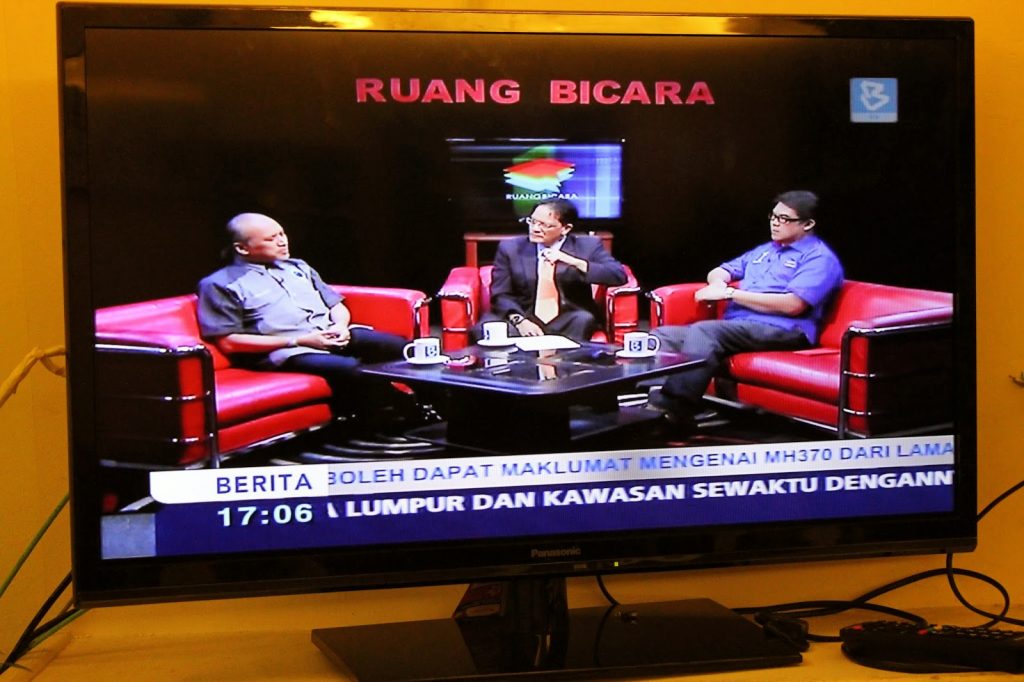 KUALA LUMPUR (3/4/2014) -BERNAMA TV, Ketua Aktivis Persatuan Pengguna Islam Malaysia (PPIM), Datuk Nadzim Johan bersama dengan Presiden Kelab Wartawan Muda Malaysia, Dzulkarnain Taib membincangkan secara siaran lansung di Bernama.