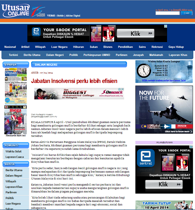 “Kita perlu sedar, hanya sebilangan kecil golongan muflis negara ini yang mampu melepaskan diri daripada kepompong berkenaan namun sebilangan besar masih diisytiharkan muflis sehingga kini,” katanya ketika dihubungi Utusan Malaysia di sini hari ini.