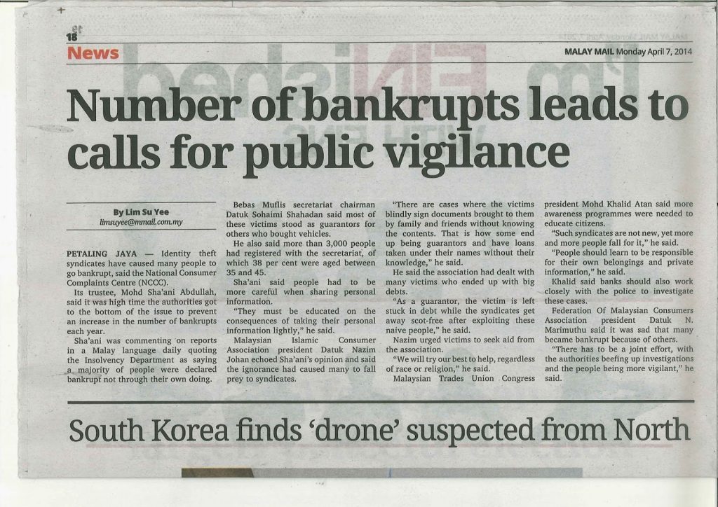 1846) 7 APRIL 2014 MALAY MAIL – NUMBER OF BANKRUPTS LEADS TO CALL FOR PUBLIC VIGILANCE