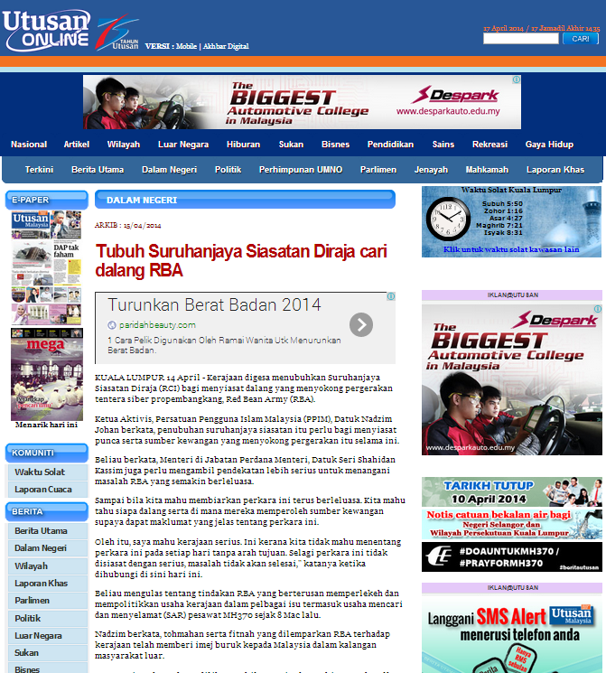 Beliau mengulas tentang tindakan RBA yang berterusan memperlekeh dan mempolitikkan usaha kerajaan dalam pelbagai isu termasuk usaha mencari dan menyelamat (SAR) pesawat MH370 sejak 8 Mac lalu.