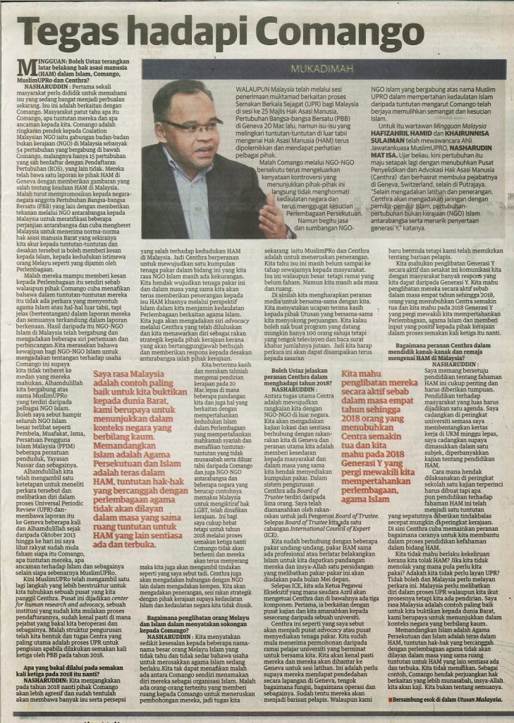 MINGGUAN: Boleh Ustaz terangkan latar belakang hak asasi manusia (HAM) dalam Islam, Comango, MuslimUPRo dan Centhra?