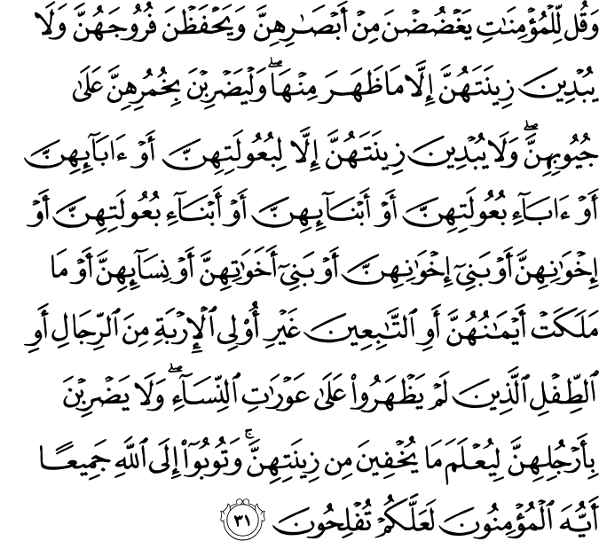 janganlah mereka memperlihatkan perhiasan tubuh mereka kecuali yang zahir