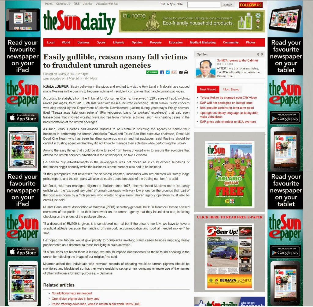 As such, various parties had advised Muslims to be careful in selecting the agency to handle their business in performing the umrah. Andalusia Travel and Tours Sdn Bhd executive chairman, Datuk Md Daud Che Ngah, who has been handling numerous umrah and haj packages, said Muslims should be careful in trusting agencies that they did not know to manage their activities while performing the umrah.