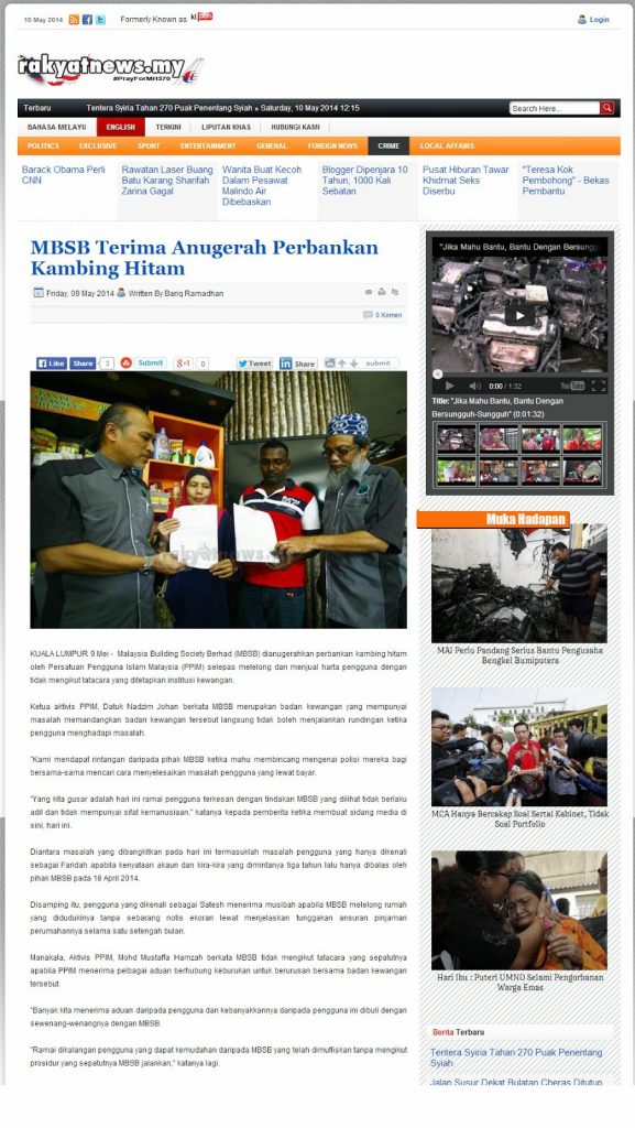1895) RAKYAT NEWS 9/05/2014 – MBSB TERIMA ANUGERAH PERBANKAN KAMBING HITAM