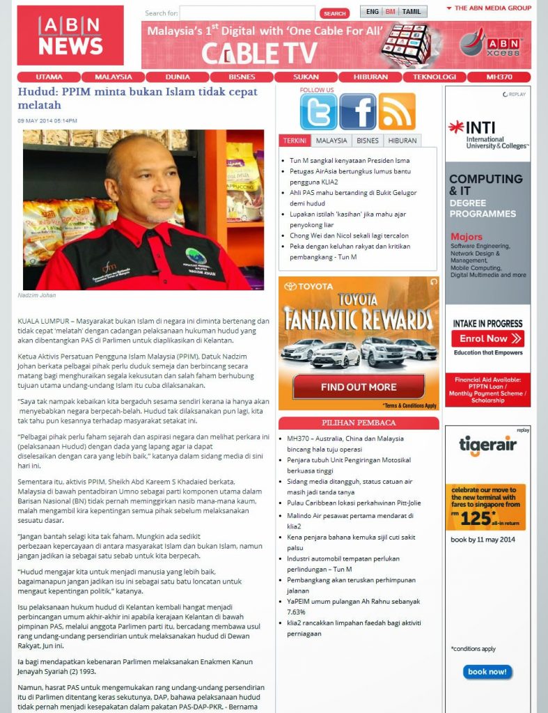 1898) ABN 9/05/2014 – HUDUD : PPIM MINTA BUKAN ISLAM TIDAK CEPAT MELATAH