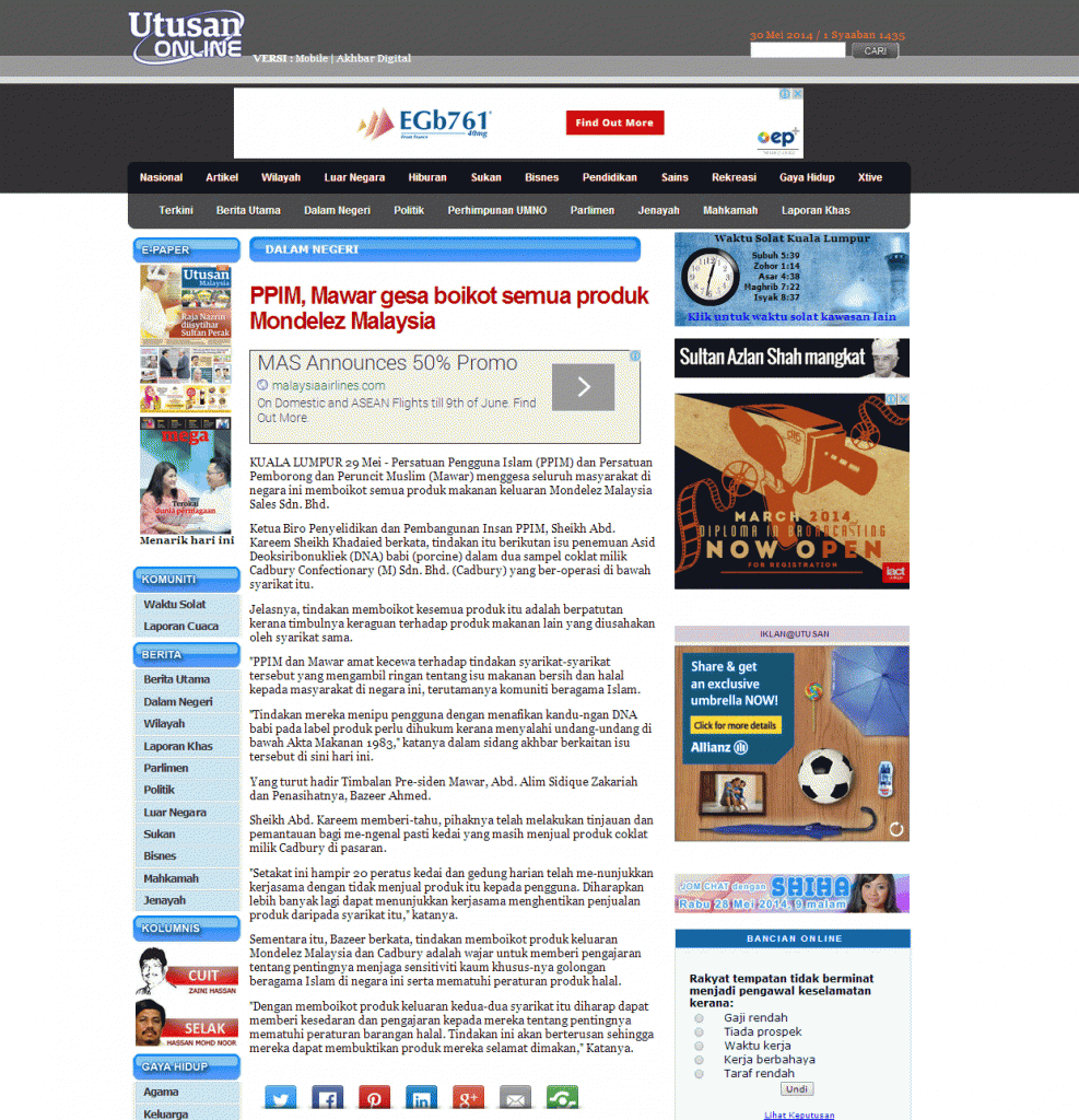 Artikel Penuh: http://www.utusan.com.my/utusan/Dalam_Negeri/20140530/dn_16/PPIM,-Mawar-gesa-boikot-semua-produk-Mondelez-Malaysia#ixzz33AaVwAel