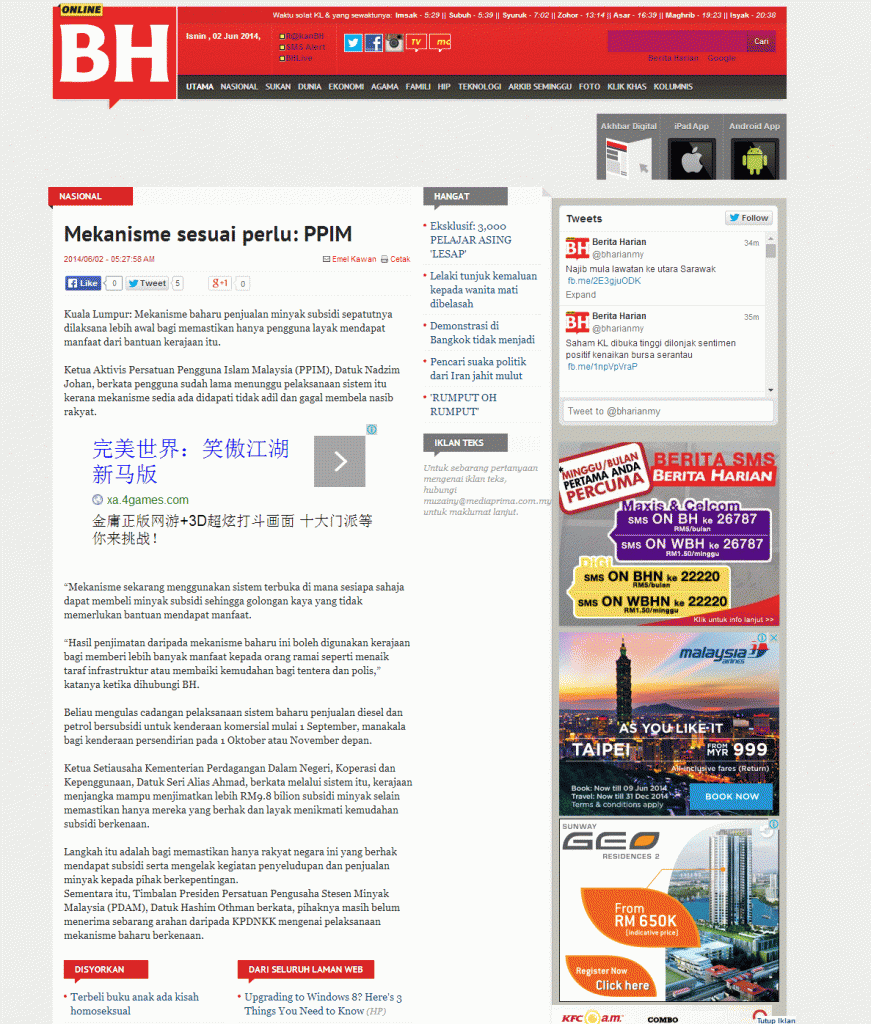 Beliau mengulas cadangan pelaksanaan sistem baharu penjualan diesel dan petrol bersubsidi untuk kenderaan komersial mulai 1 September, manakala bagi kenderaan persendirian pada 1 Oktober atau November depan.