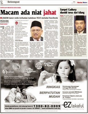 Othman mengulas mengenai tuduhan seorang pengarah daripada sebuah badan bukan kerajaan (NGO) yang mendakwa kononnya JAKIM dan Kementerian Kesihatan seolah-olah akan ‘memusing’ laporan asal kepada yang baru atas dasar mahu menyelamatkan syarikat Cadbury daripada kerugian melalui laman sosial Facebook milik individu itu, Rabu lalu.