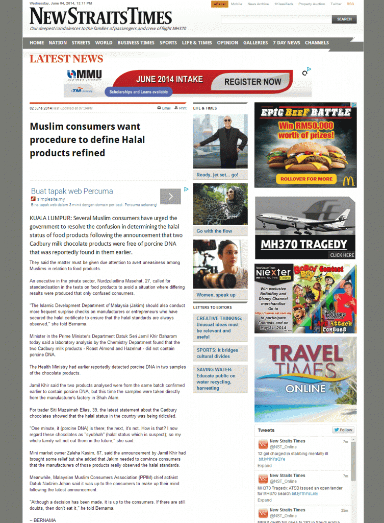 Read more: Muslim consumers want procedure to define Halal products refined – Latest – New Straits Times http://www.nst.com.my/latest/muslim-consumers-want-procedure-to-define-halal-products-refined-1.610112#ixzz33dxsMpLV