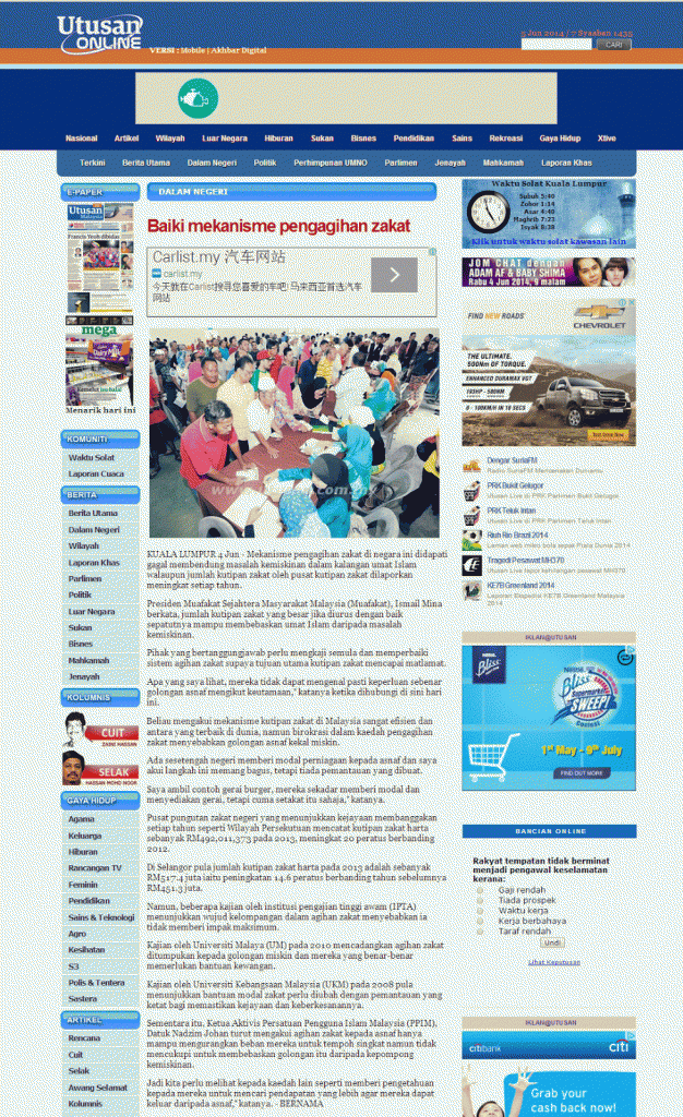 Artikel Penuh: http://www.utusan.com.my/utusan/Dalam_Negeri/20140605/dn_19/Baiki-mekanisme-pengagihan-zakat#ixzz33kpVPgVX