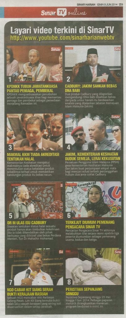 2000) SINAR HARIAN 9/6/2014 – JAKIM KEMENTERIAN KESIHATAN DUDUK SEMEJA, LERAI KEKUSUTAN