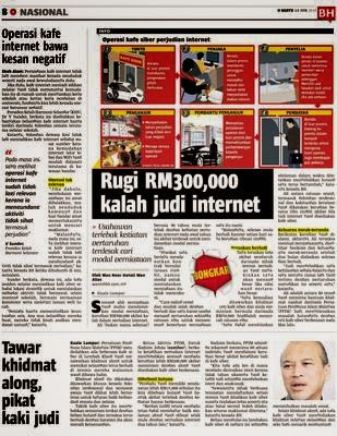 Ali (bukan nama sebenar) berusia 40 tahun mula terjebak dengan kegiatan perjudian internet pada awal tahun ini akibat terdesak untuk mendapatkan modal perniagaan.