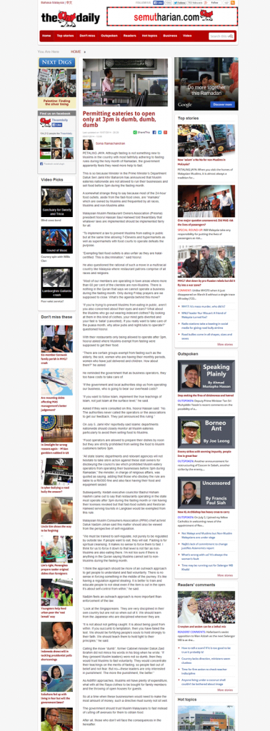 “To implement a law to prevent Muslims from eating in public but at the same time allowing 7-Elevens and hypermarkets as well as supermarkets with food courts to operate defeats the purpose.