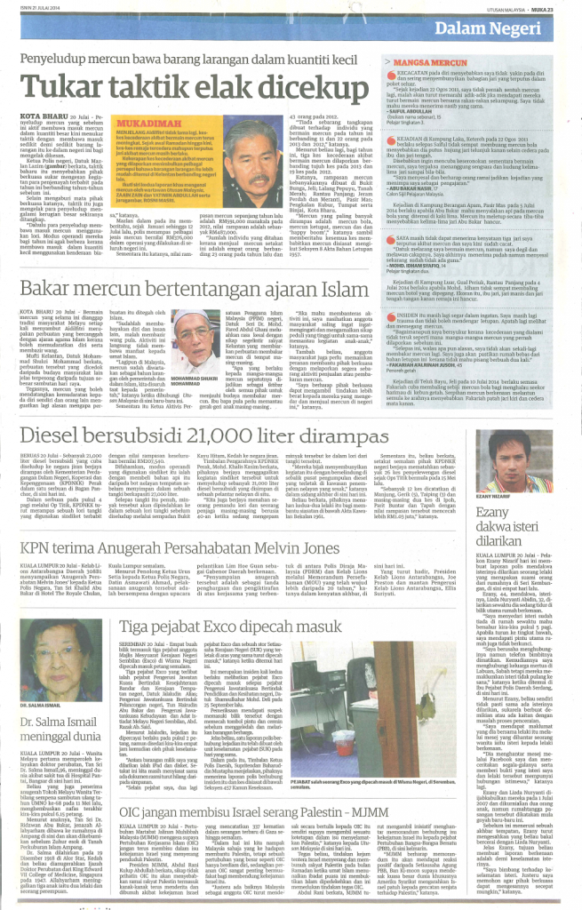2059) UTUSAN MALAYSIA 21/07/2014 – Bakar mercun bertentangan ajaran Islam -PPIM