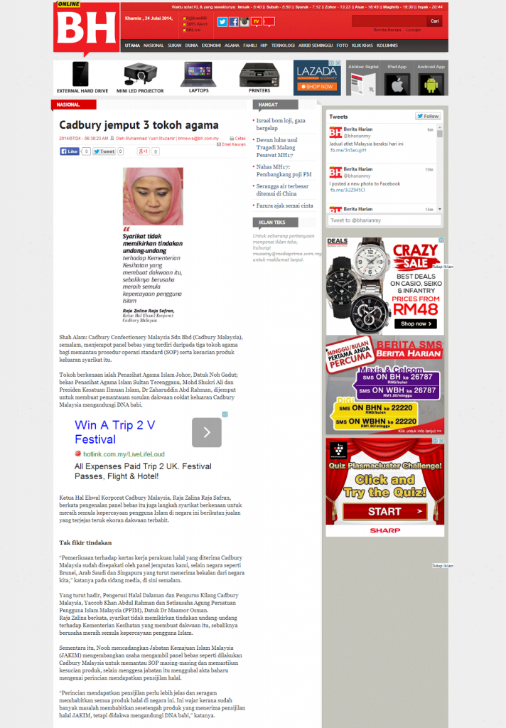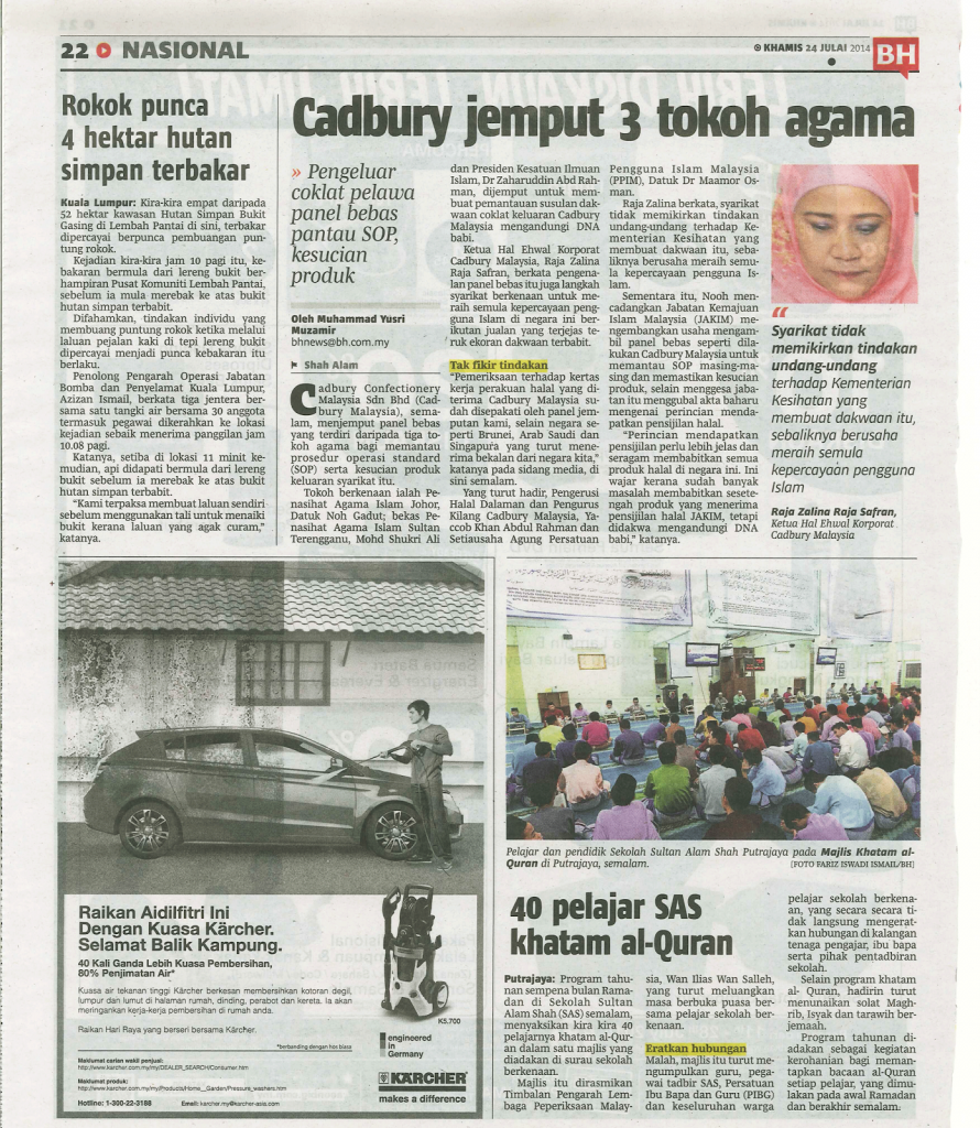 2065) BERITA HARIAN 24/07/2014 – Cadbury Jemput 3 Tokoh Agama – PPIM