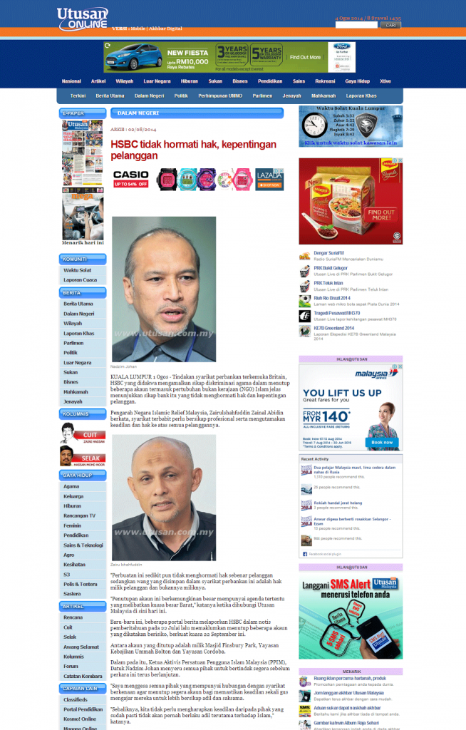 Artikel Penuh: http://www.utusan.com.my/utusan/Dalam_Negeri/20140802/dn_16/HSBC-tidak-hormati-hak,-kepentingan-pelanggan#ixzz39OU3QMfZ