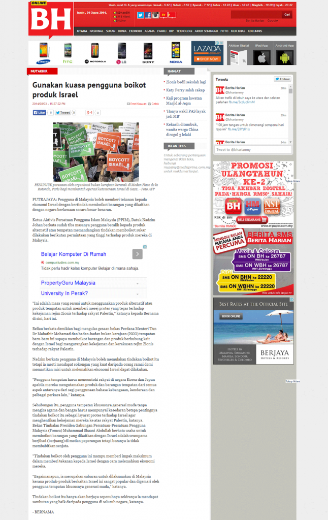 “Bagaimanapun, ia merupakan cabaran untuk dilaksanakan di Malaysia kerana produk-produk berkaitan Israel ini sangat popular dan digemari oleh pengguna tempatan khususnya generasi muda,” katanya.
