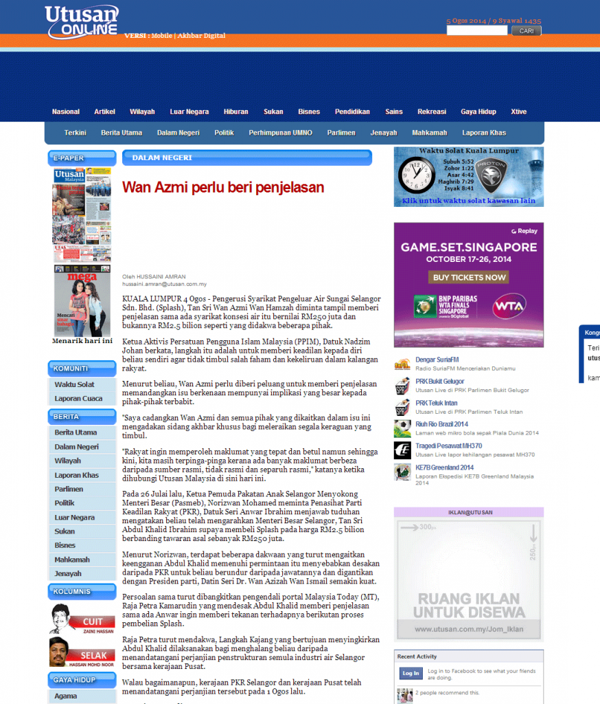 Artikel Penuh: http://www.utusan.com.my/utusan/Dalam_Negeri/20140805/dn_13/Wan-Azmi-perlu-beri-penjelasan#ixzz39UjrFEvf