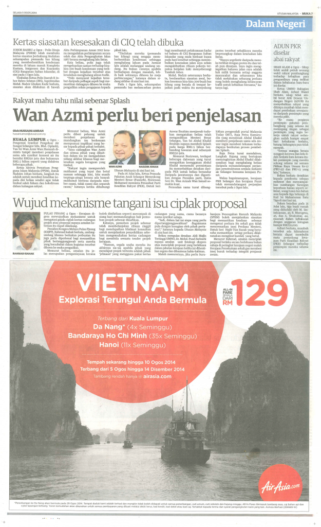 2077) UTUSAN 5/8/2014- Wan Azmi perlu beri penjelasan – PPIM