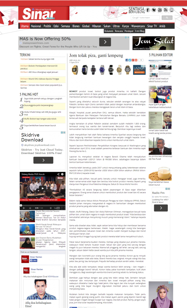 Demikian juga halnya dengan apa yang kita telan setiap hati. Semakin banyak makanan dan minuman dari Amerika dan Israel menjadi pilihan orang kita, walaupun diketahui tiada logo halal Jakim. Kita teguk dan kita kunyah sedangkan wang yang kita bayar mungkin digunakan membeli peluru dan bom untuk menyerang Gaza.