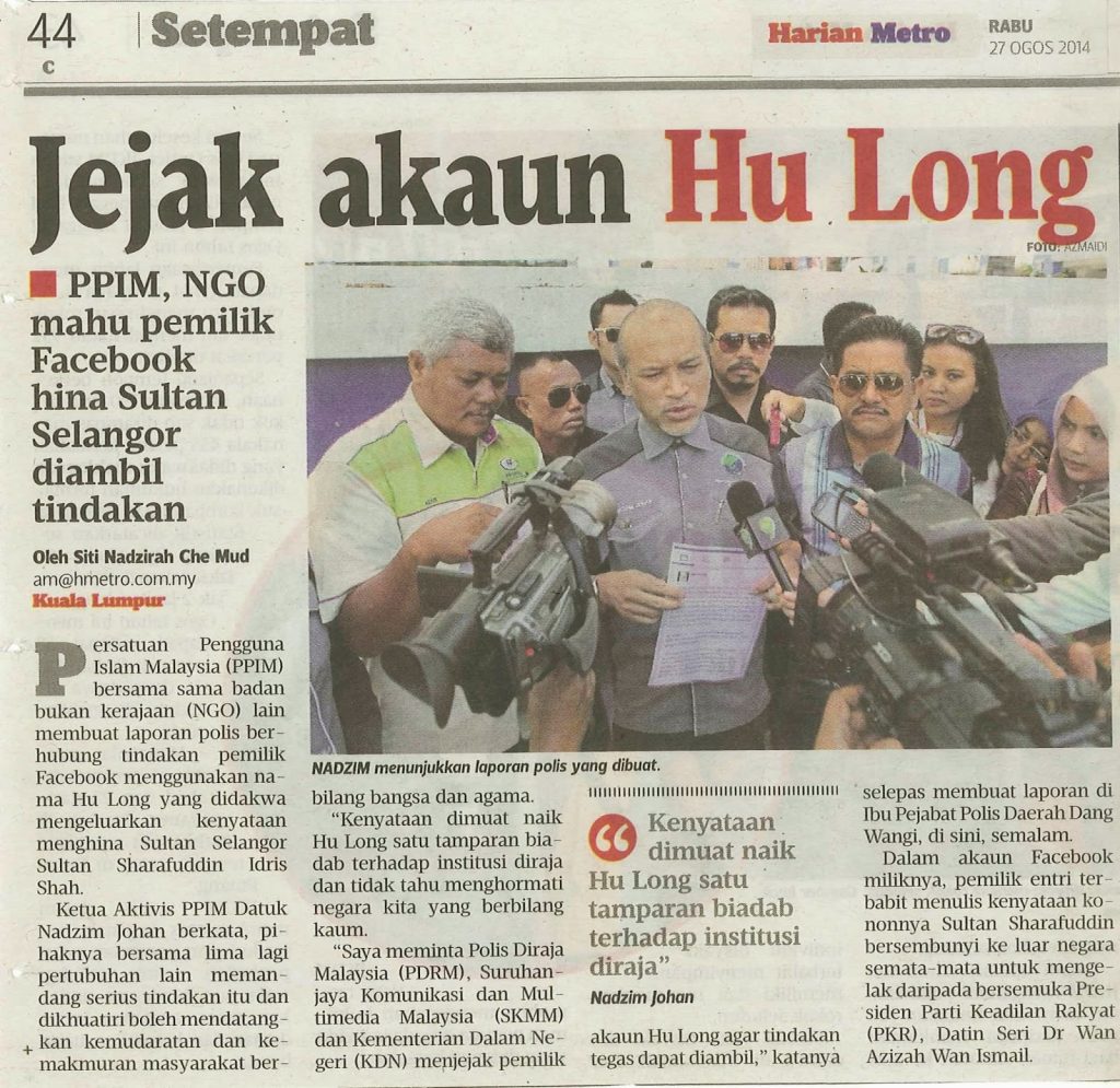 2114) ARKIB BERITA PPIM – 27/8/2014 HARIAN METRO – Jejak Akaun Hu Long