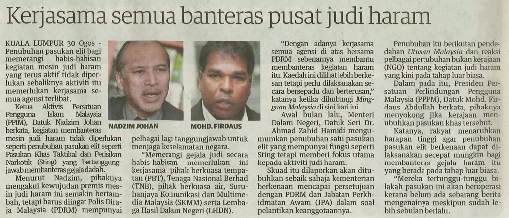 “Memerangi gejala judi secara habis-habisan memerlukan kerjasama