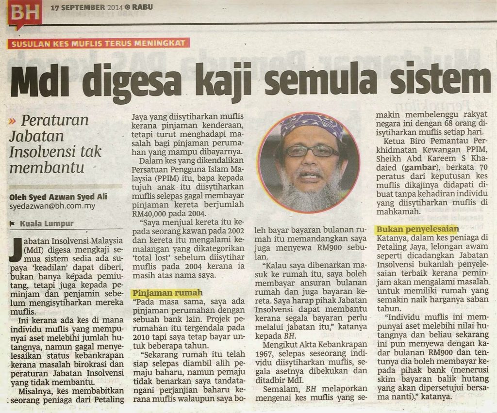 2126) ARKIB BERITA PPIM – 17/9/2014 BERITA HARIAN – MdI Digesa Kaji Semula Sistem
