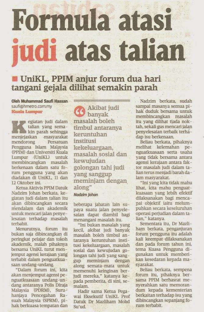 2128) ARKIB BERITA PPIM -18/9/2014 HARIAN METRO ONLINE – Formula Atasi Judi Atas Talian